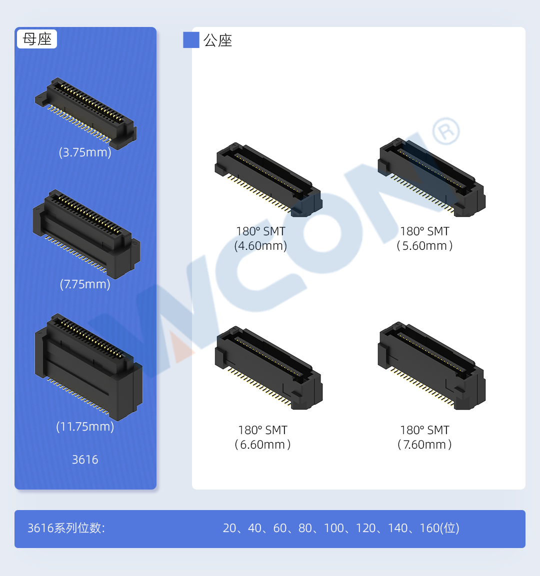 3616系列連接器:0.8毫米間距,支持高密度互連和靈活堆疊